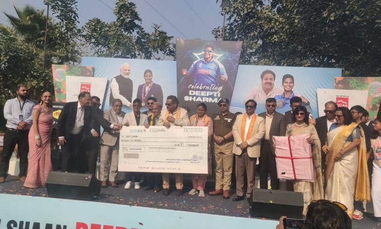 मित्तल मिशन की ओर से दीप्ति शर्मा को रामसरन मित्तल व अन्य परिवारीजनों ने पांच लाख का चेक व क्रिकेट मैदान में मौजूद दीप्ति की फोटो प्रदान की। संजीव मित्तल ने दीप्ति को दबंग एंड ओनली वन कहते हुए अतिथियों का स्वागत किया। कहा कि भारत के लिए क्रिकेट सिर्फ एक खेल नहीं बल्कि इमोशन है। आशु मित्तल ने कहा कि यह सम्मान छोटी सी गली में देखे गए सपने को साकार करने का सम्मान है। दीप्ति ने सिर्फ क्रिकेट नहीं खेला बल्कि इतिहास रचा है। इस अवसर पर दीप्ति शर्मा के माता पिता भगवान शर्मा, सुशीला शर्मा, भाई, सुमित व प्रशान्त भी मौजूद थे। निकुंज मित्तल, आकांक्षा मित्तल, अनुप्रिया, नमन मित्तल ने अतिथियों को स्मृति चिन्ह प्रदान कर स्वागत किया। संचालन आशु मित्तल व विनीत खेड़ा ने किया।