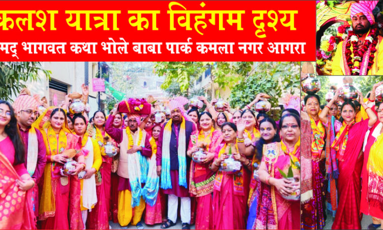 Agra : कमला नगर में उमड़ा आस्था का सागर, 151 कलशों संग निकली भव्य कलश यात्रा, गूंजे “राधे–राधे” के जयघोष