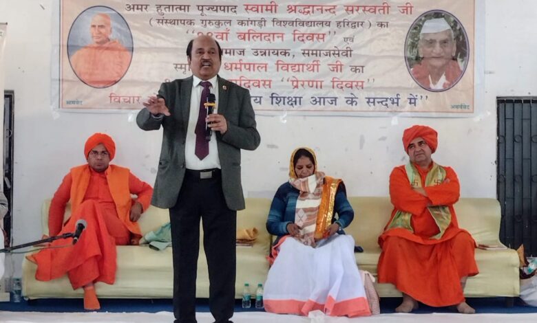 स्वामी आदित्यवेश विजय क्लब में सरोजदेवी धर्मपाल विद्यार्थी चैरिटेबल ट्रस्ट द्वारा गुरुकुलीय शिक्षा के पुनरोद्धारक और गुरुकुल कांगड़ी विश्वविद्यालय (हरिद्वार) के संस्थापक, आर्यसमाज के महान संत स्वामी श्रद्धानंद सरस्वती जी के 99वें बलिदान दिवस और आर्यसमाज के उन्नायक समाजसेवी स्व.धर्मपाल विद्यार्थी जी के 110वें जन्म जयंती को प्रेरणा दिवस के रूप में आयोजित कार्यक्रम को संबोधित कर रहे थे। जिसमें ‘गुरुकुलीय शिक्षा आज के संदर्भ में’ विषयक गोष्ठी का आयोजन भी हुआ। जिसमें आर्य विद्वानों ने विचार व्यक्त किए।
