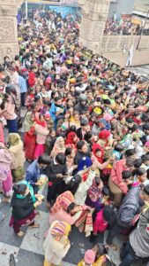 मनोहर समाचार, आगरा। नव वर्ष के पावन अवसर पर श्री खाटू श्याम जी मंदिर, जीवनी मंडी में श्याम प्रभु की भक्ति से ओत-प्रोत अद्भुत वातावरण देखने को मिला। श्याम बाबा का आशीर्वाद पाने के लिए प्रातः मंदिर के पट खुलते ही श्रद्धालुओं की भारी भीड़ उमड़ पड़ी, जो देर रात्रि तक निरंतर बाबा के जयकारों के साथ दर्शन करती रही। “हारे का सहारा श्याम हमारा” के गगनभेदी उद्घोष से संपूर्ण परिसर गूंज उठा।इस विशेष अवसर पर श्री खाटू श्याम जी मंदिर ट्रस्ट द्वारा श्याम बाबा का मनोहारी एवं भव्य श्रृंगार किया गया। रंग-बिरंगे पुष्पों से सुसज्जित दिव्य स्वर्ण श्रृंगार में बाबा श्याम की अलौकिक छटा ने भक्तों के मन को भाव-विभोर कर दिया। मंदिर परिसर को फूलों, गुब्बारों तथा आकर्षक विद्युत सज्जा से सजाया गया, जिससे पूरा वातावरण उत्सव और भक्ति के रंग में रंग गया।
