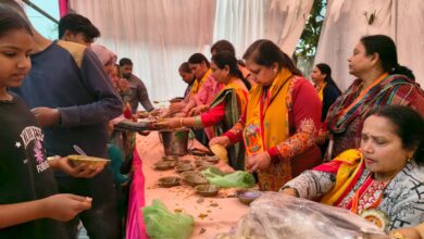 Agra : पंचदिवसीय धार्मिक आयोजन के प्रथम दिन श्री प्रेम प्रकाश ग्रंथ एवं श्रीमद्भागवत गीता पाठ से गूंजा टेऊँराम आश्रम