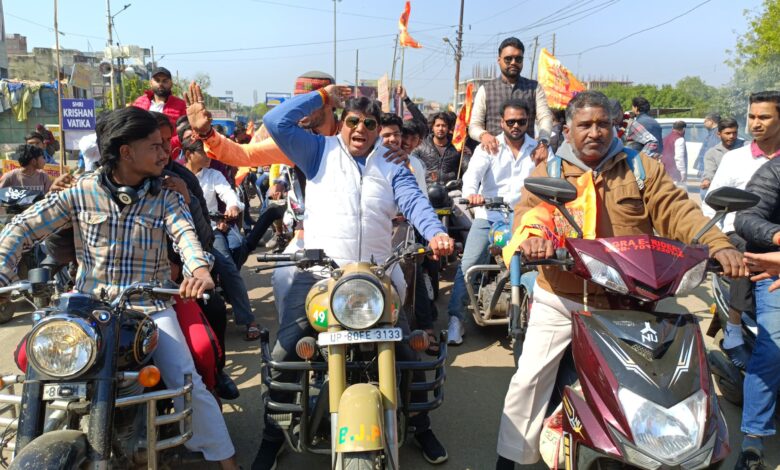 Agra : विराट हिंदू सम्मेलन के जन-जागरण की निकाली भव्य बाइक रैली