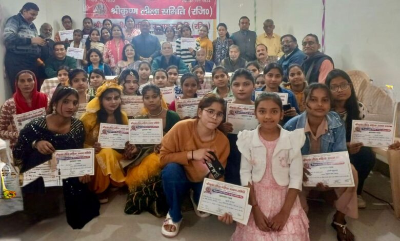 Agra : श्री कृष्ण लीला समिति के महिला उत्थान केंद्र में वितरित हुए कंप्यूटर एवं सिलाई-कढ़ाई के प्रमाण पत्र