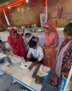 ताज महोत्सव में ओडीओपी व वर्ल्ड डिजायनिंग फोरम द्वारा आयोजित धरोहर कार्यक्रम एआई जैक सिलाई मशीन से दिया गया प्रशिक्षण आगरा। देश के जाने माने फैशन
