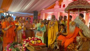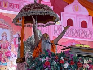 -व्यासपीठ पर विराजमान चित्रकूट के स्वामी श्री रामस्वरूपाचार्य जी महाराज के मुखारबिन्द से बही श्रीराम कथा की गंगा, वन गमन और केवट प्रसंग सुन भावमुग्ध हुए श्रद्धालु