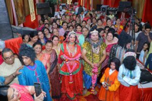 शिव-पार्वती विवाह प्रसंग के साथ ही शिव बारात का दृश्य भी अत्यंत आकर्षक रहा। भगवान शिव की बारात में देव, गण, भूत-प्रेत और शिवगणों का अनोखा स्वरूप प्रस्तुत किया गया, जिसने सभी को मंत्रमुग्ध कर दिया। इस दौरान श्रद्धालु स्वयं को बाराती मानकर भक्ति भाव में झूम उठे और बैंड-बाजों की धुन पर जमकर नृत्य किया। पूरा परिसर “बोल बम” और “हर-हर महादेव” के जयघोष से गूंज उठा।