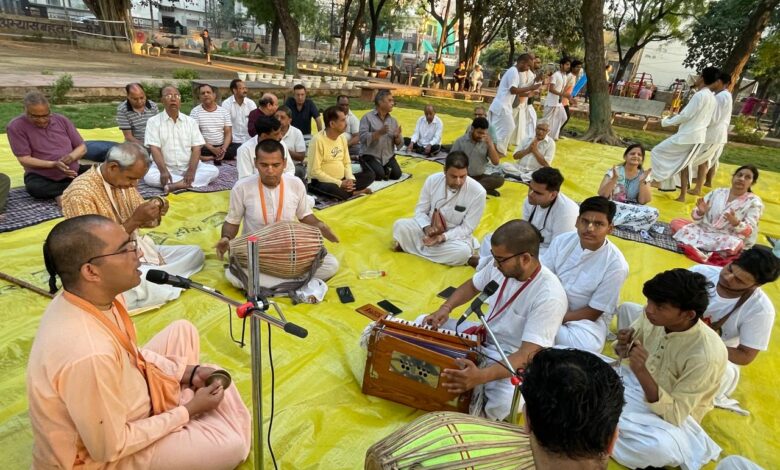 इस्कॉन द्वारा जयपुर हाउस स्थित अहिंसा पार्क में आयोजित संकीर्तन में क्षेत्रीय लोगों ने भक्ति भाव के साथ लिया भाग
