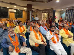 काव्य संध्या का संचालन करते हुए अंतरराष्ट्रीय कवयित्री डॉ रुचि चतुर्वेदी ने हर कष्ट मिटाने को जग में, आते बजरंग बली। खुशियों का शुभ आशीष साथ, लाते बजरंग बली… पंक्तियों का पाठ किया। पदम गौतम ने अपने काव्य पाठ में कहा कि “धर्महीन रथ के पहिये का पथ में रुकना निश्चित है, रामनाम से विमुख हुए शीषों का झुकना निश्चित है…। इसके अतिरिक्त अशोक चौबे, डॉ. बृज बिहारी लाल ‘बिरजू’, मोहित सक्सेना, नूतन अग्रवाल ने भी अपनी सशक्त प्रस्तुतियों से कार्यक्रम को भक्तिमय ऊंचाइयों तक पहुंचाया।