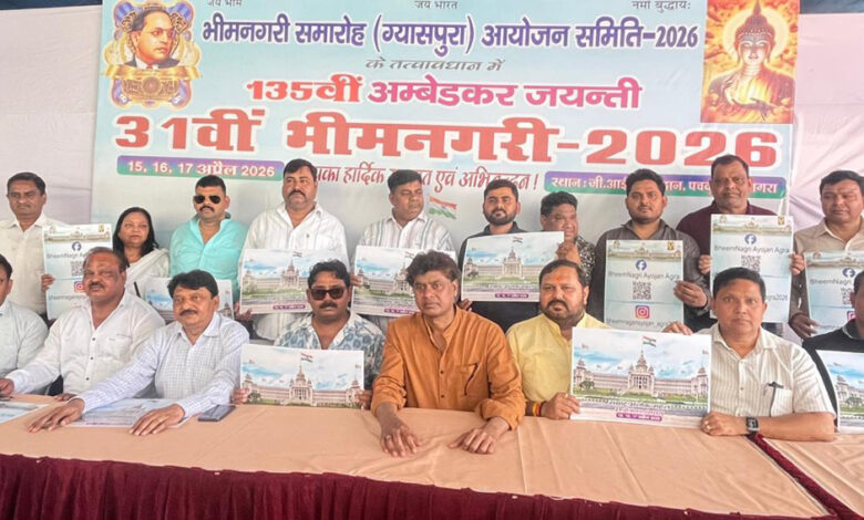 मनोहर समाचार, आगरा। भारत रत्न डॉ. भीमराव अंबेडकर के 135वें जन्मोत्सव पर आगरा में भव्य आयोजन की तैयारी है। ग्यासपुरा क्षेत्र की भीमनगरी समारोह आयोजन समिति की ओर से 31वीं भीमनगरी का आयोजन शाहगंज स्थित जीआईसी मैदान पर किया जा रहा है। भीमनगरी की तैयारियां अंतिम चरण में है। गुरुवार को जीआईसी मैदान पर आयोजन समिति के पदाधिकारियों ने भीमनगरी महोत्सव के तीन दिवसीय आयोजन की विस्तृत जानकारी के साथ भीमनगरी महल का पोस्टर विमोचन किया।